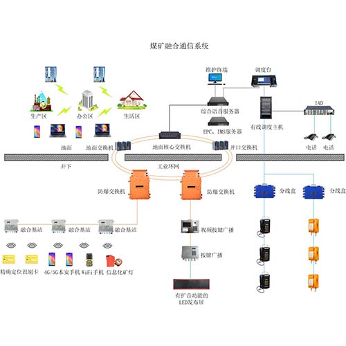 煤礦調(diào)度融合通信系統(tǒng)融合5G、4G、WIFI、IAD、廣播、數(shù)字程控、視頻調(diào)度等通信實(shí)現(xiàn)方式,一套